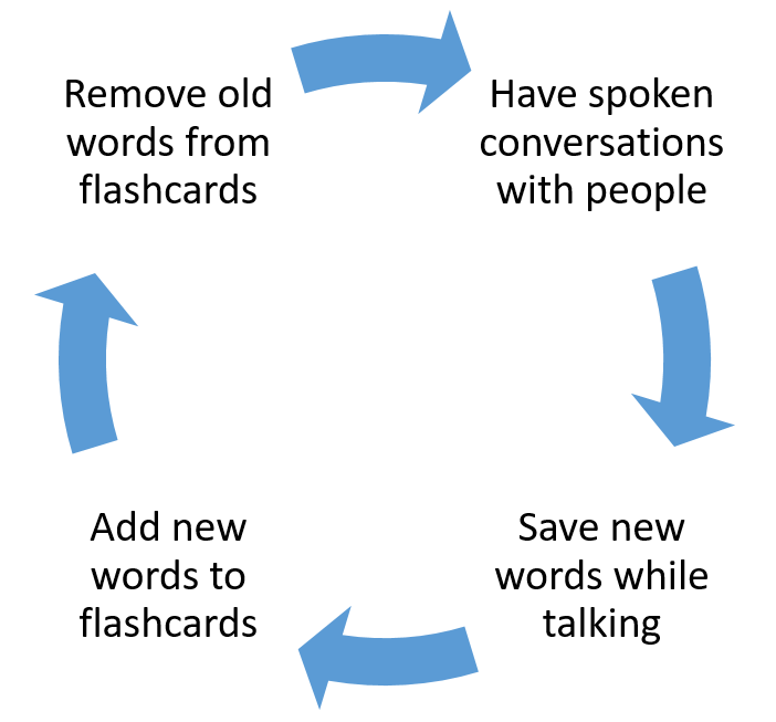 Now all we have to do is continue the cycle of having spoken conversations, saving new words, adding them to the flashcard set, and removing old words that have been mastered.