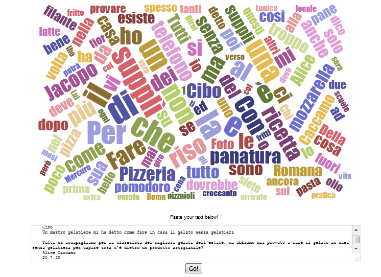 Example: If I want to practice Italian, I can find an article or book written in that language, copy all the text on the page, and paste it into this word cloud generator:
