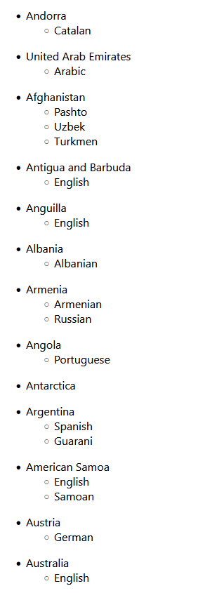 Today we will do a simple example to display a list of countries with their official languages using the following API, which you can see in the GraphQL playground here: