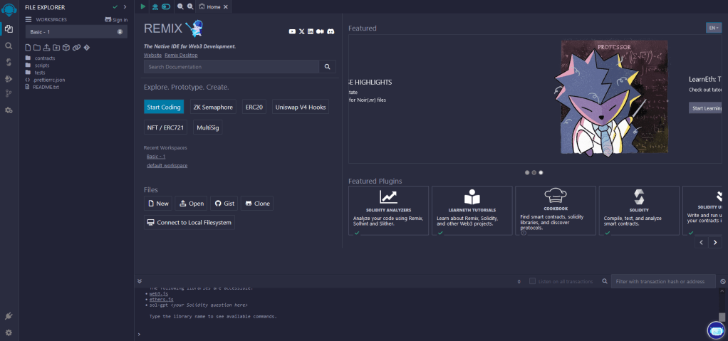 Remix IDE offers an easy-to-use environment to develop smart contracts and is ideal for beginners to start with Solidity. The welcome page and IDE can be found here: